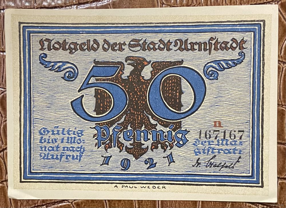 Нодгельд 50 пфеннигов 1921 год. Арнштадт. Веймарская республика