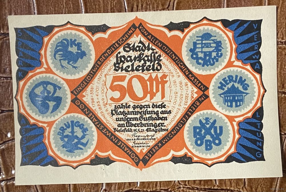Нодгельд 50 пфеннигов 1921 год. Билефельд. Веймарская республика