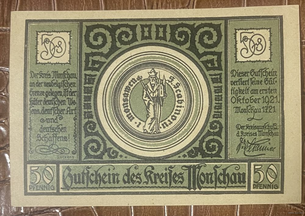 Нодгельд 50 пфеннигов 1921 год. Моншау. Веймарская республика