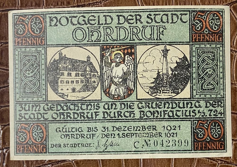Нодгельд 50 пфеннигов 1921 год. Ордруф. Веймарская республика