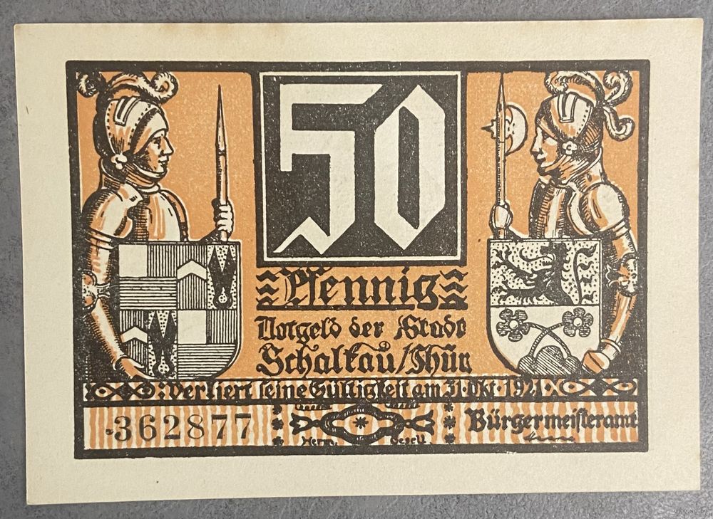 Нодгельд 50 пфеннигов 1921 год. Шалькау. Веймарская республика