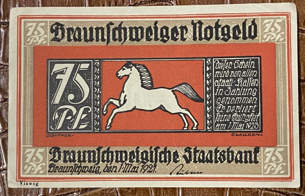 Нодгельд 75 пфеннигов 1921 год. Брауншвейг. Веймарская республика