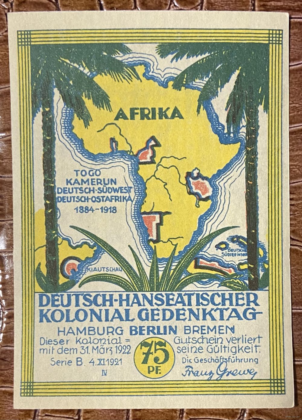 Нодгельд 75 пфеннигов 1921 год. Гамбург, Берлин, Бремен. Веймарская республика