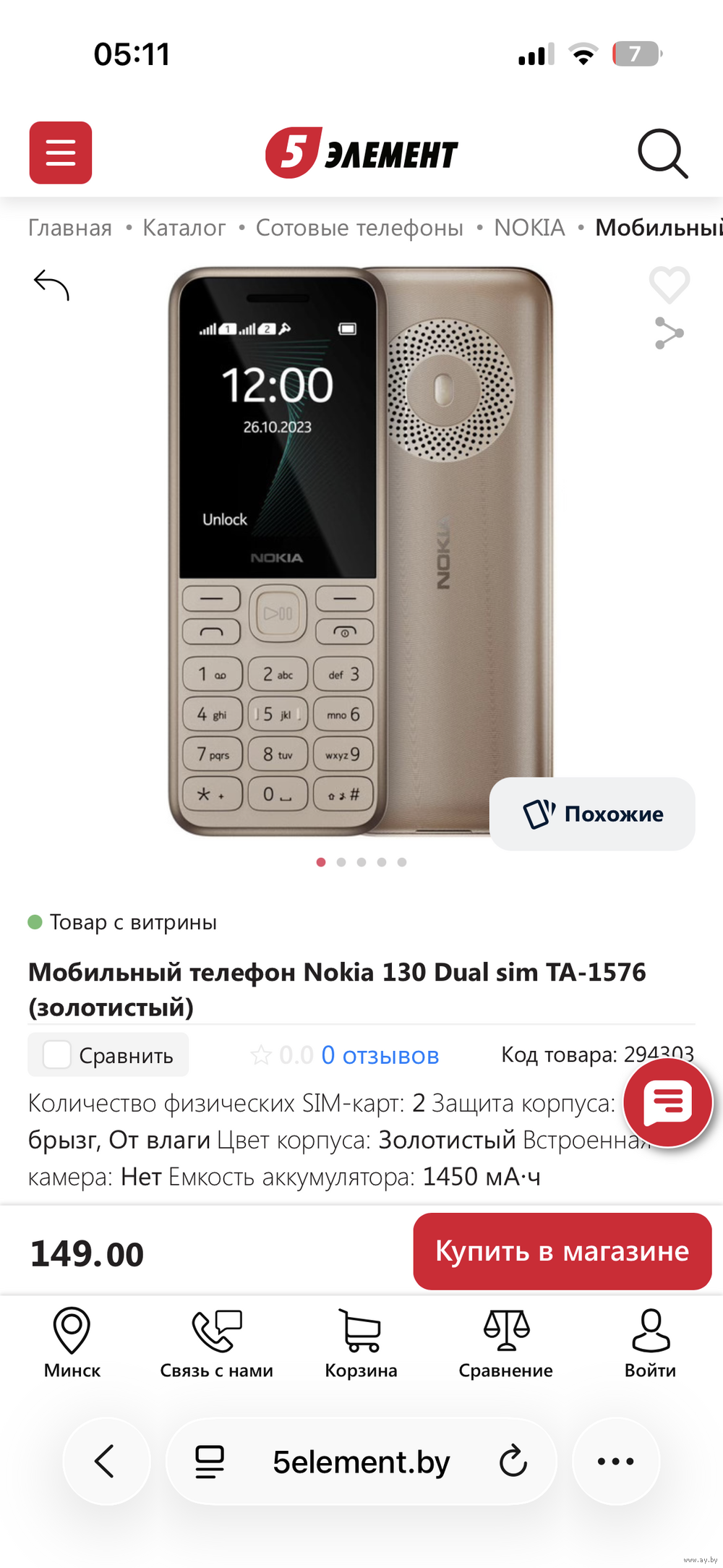 Продаю Nokia 130 Dual sim TA-1576, цвет золотистый. Коробки и документов нет. Состояние идеальное — ни царапин, ни потёртостей, телефон как новый. Работает отлично.