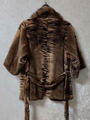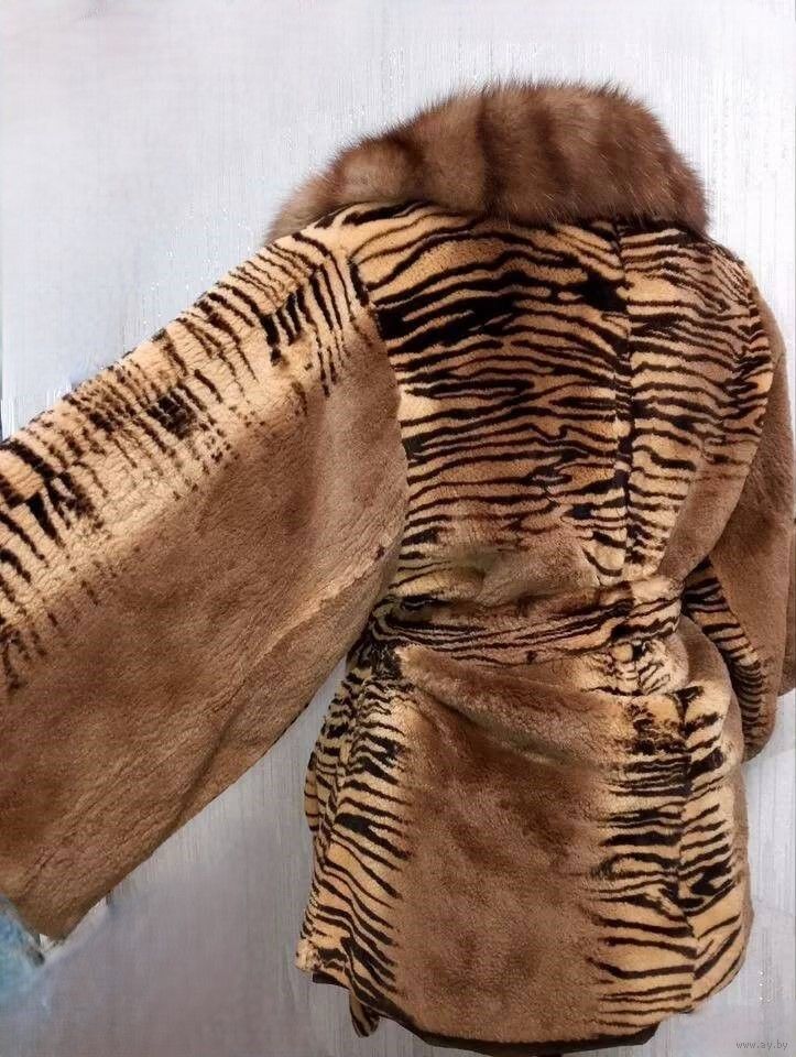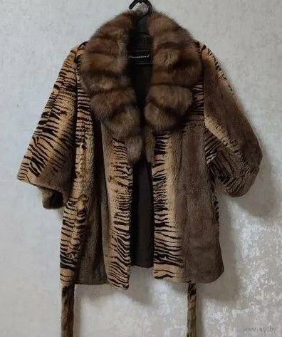 Эффектная шубка в стиле короткий "Жакет/Кимоно". Основной тон - "Мокко". Длина по спинке 63 см. Рукав укороченный - 38 см от плеча и 28 см из под мышки. Плечи 36 см. Плечо - 10 см. Глубокая пройма - 30 см(кимоно). Обхват в районе груди (у изделия) - 105 см (замер от подмышки до подмышки - 52,5 см). Шикарный дорогой воротник - Натуральный Баргузинский Соболь с сединой. Не куница, а именно - СОБОЛЬ. Плотный, набивной мех норки расцветки "тигровый трафарет" - щипка/стрижка. Есть карманы и пояс. Состояние достойное Вашего внимания! Доставка за счет продавца.