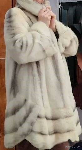 Норковая шуба. Бабочка-градиент. На фото дама ростом 167 см с личным ОГ - 102 см. Перед заказом сверяйте замеры с моей шубы с замерами Вашей фигурки. Шубка должна быть на 10-12 см больше Ваших ОГ и ОБ. Шкурки высокого качества, крупные, открыты для просмотра. Мех густой, зимний, без потёртостей, без заломов,без обломов ости, без проплешин - все в отличном виде. Два кармана боковые врезные. Высокий воротник выкладывается в двух положениях Есть и кулисы в подкладочной ткани внутри рукавов.
