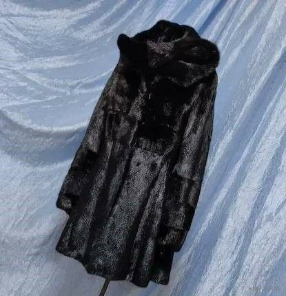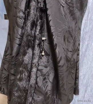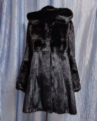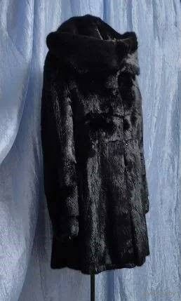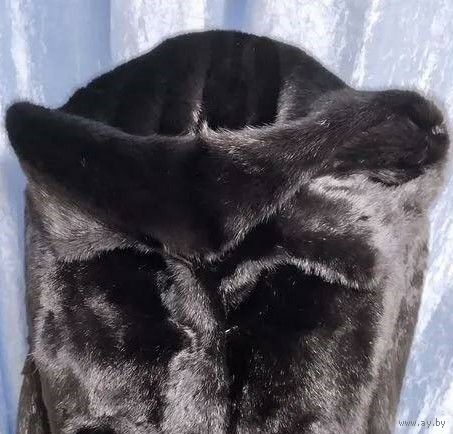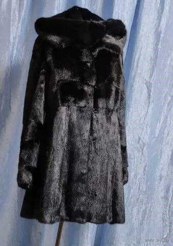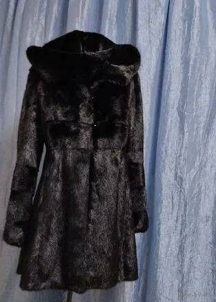 Черная шуба из натуральной норки, размер 42 - 44. Длина изделия — 90 см, Длина рукава — 63 см. ОГ - 100 см. ОБ - 100 см. Талия - 84 см. Подол "полусолнце" - 180 см. Кулисы в рукавах и в талии. Шуба в отличном состоянии, без дефектов или следов носки.