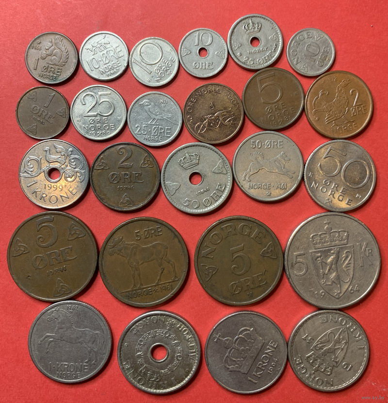 Норвегия 25 разных монет