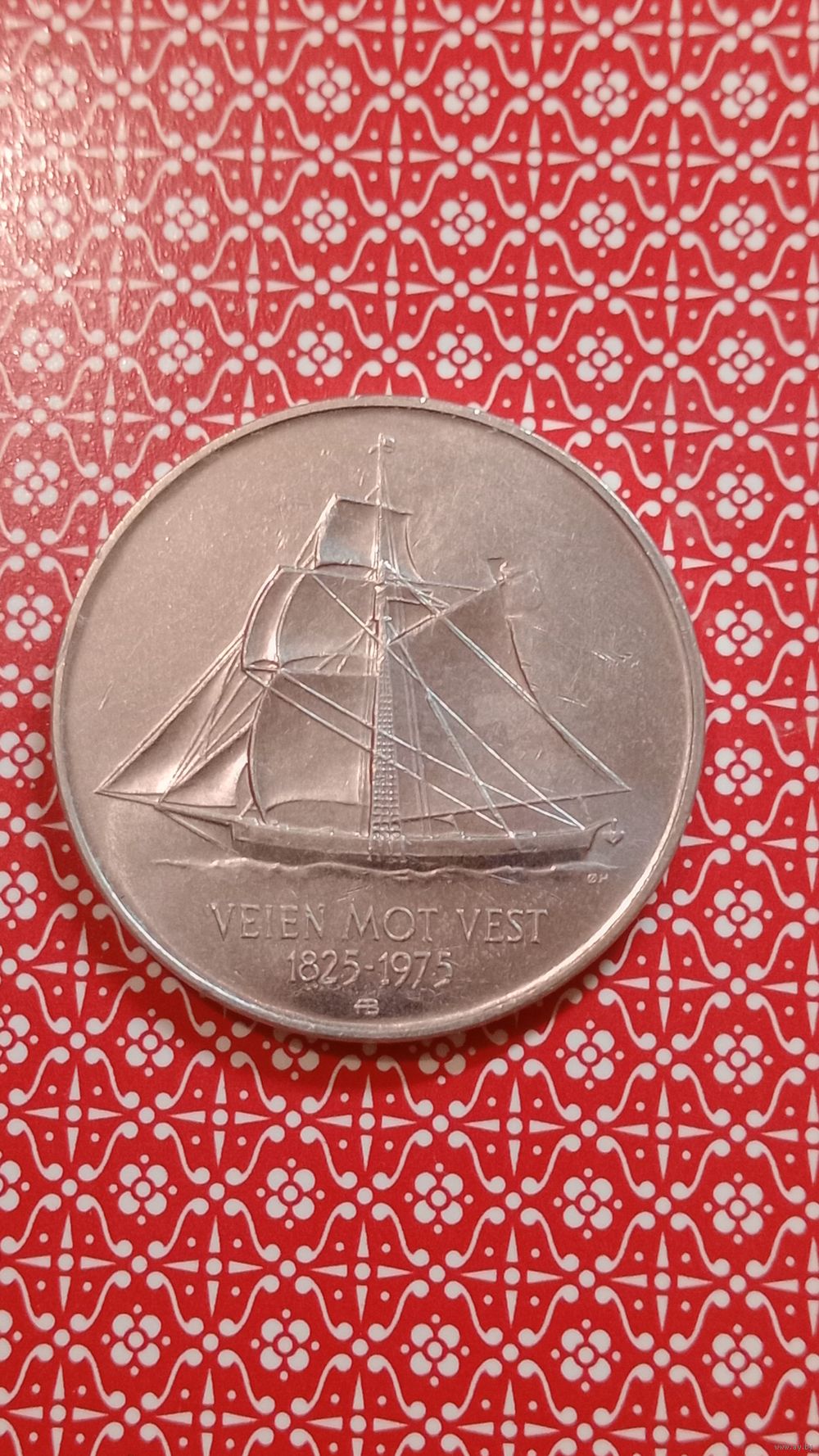 Норвегия 5 крон 1975. 150 лет эмиграции