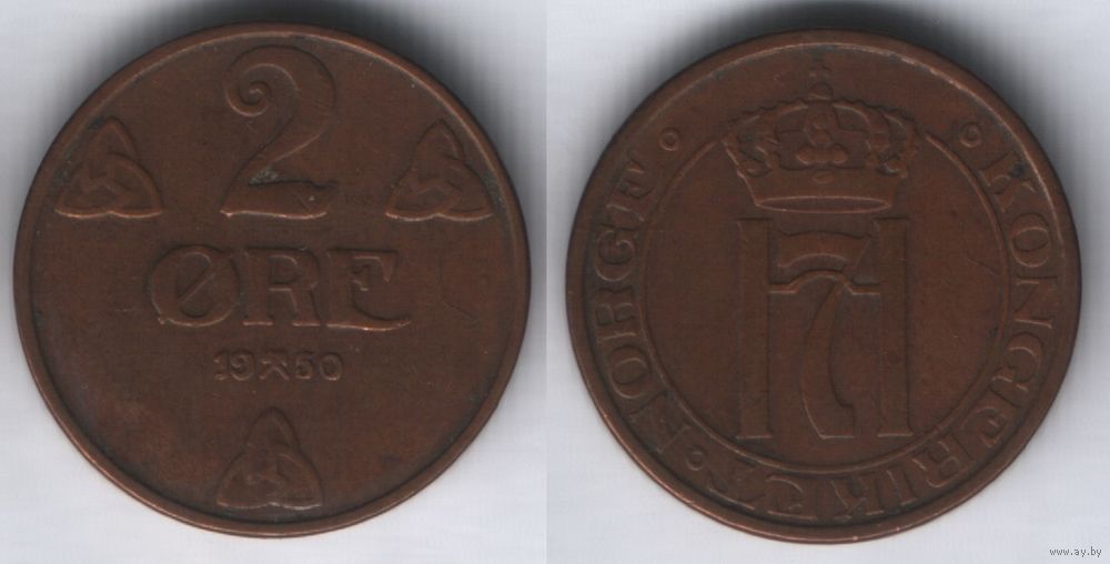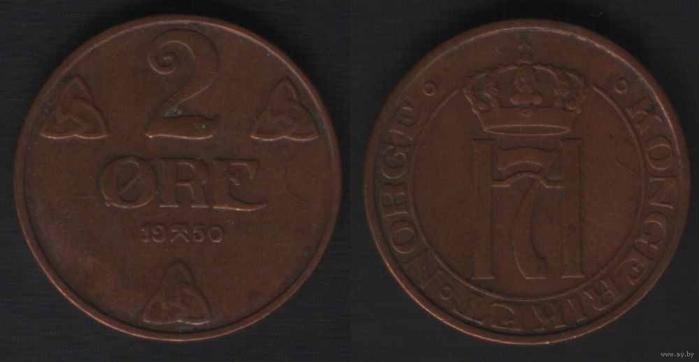 Норвегия km371 2 эре 1950 год (nf01 ТОРГ