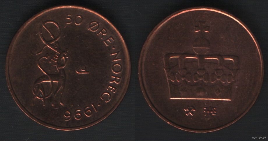 Норвегия km460 50 эре 1996 год (нов.тип) бронза (JJE)(GJL) (nf01 (nf01