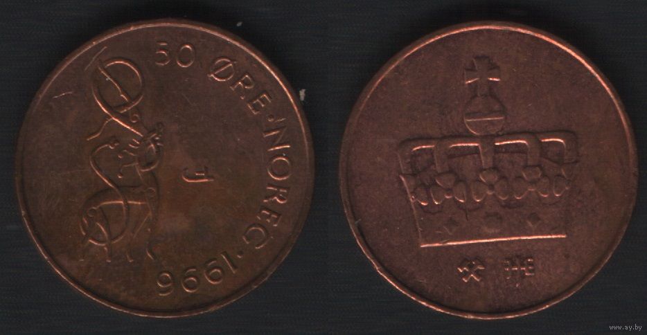 Норвегия km460 50 эре 1996 год (нов.тип) бронза (JJE)(GJL) (nf02