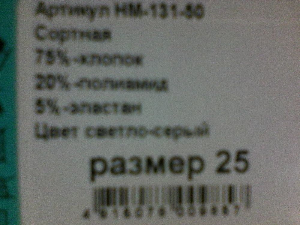 ХЛОПОК - 75%. ПОЛИАМИД - 20%. ЭЛАСТАН - 5%.