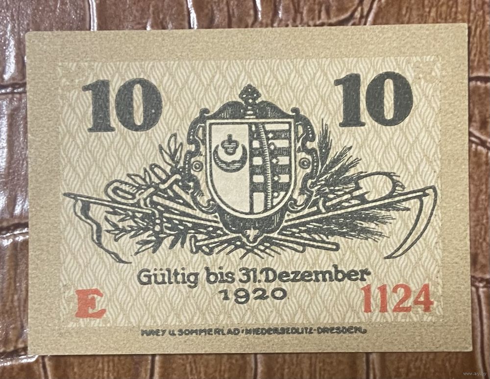 Нотгельд 10 пфеннигов 1918 год. Кемберг. Веймарская республика