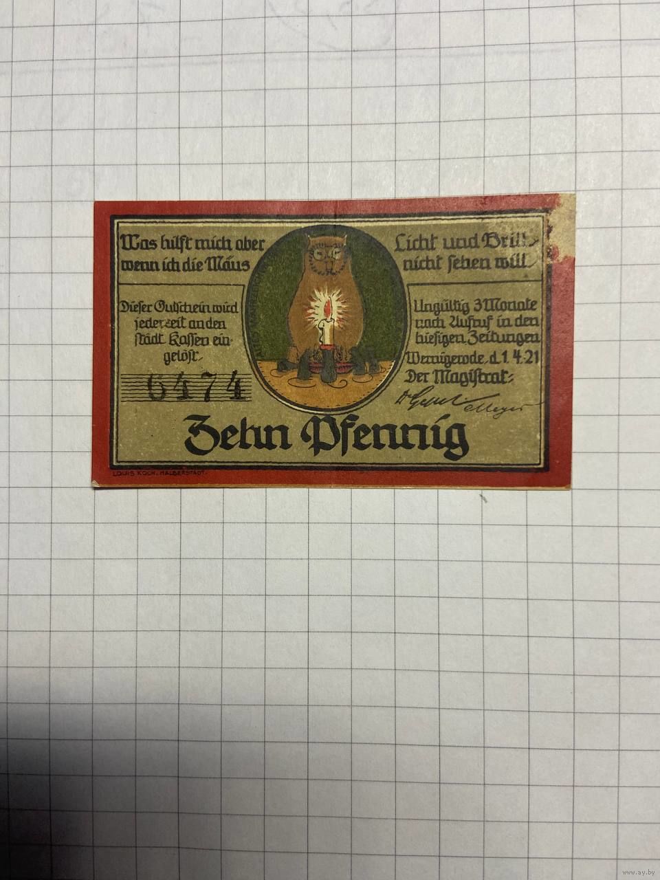Нотгельд 10 пфеннигов 1921 год. -2112