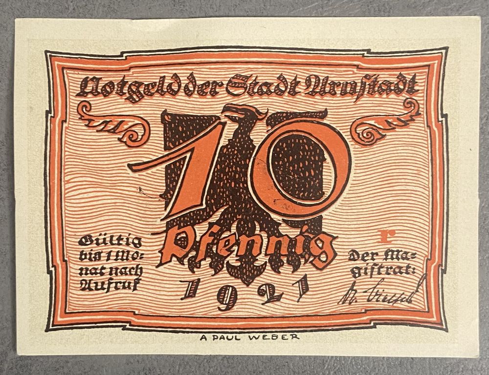 Нотгельд 10 пфеннигов 1921 год. Арнштадт. Веймарская республика
