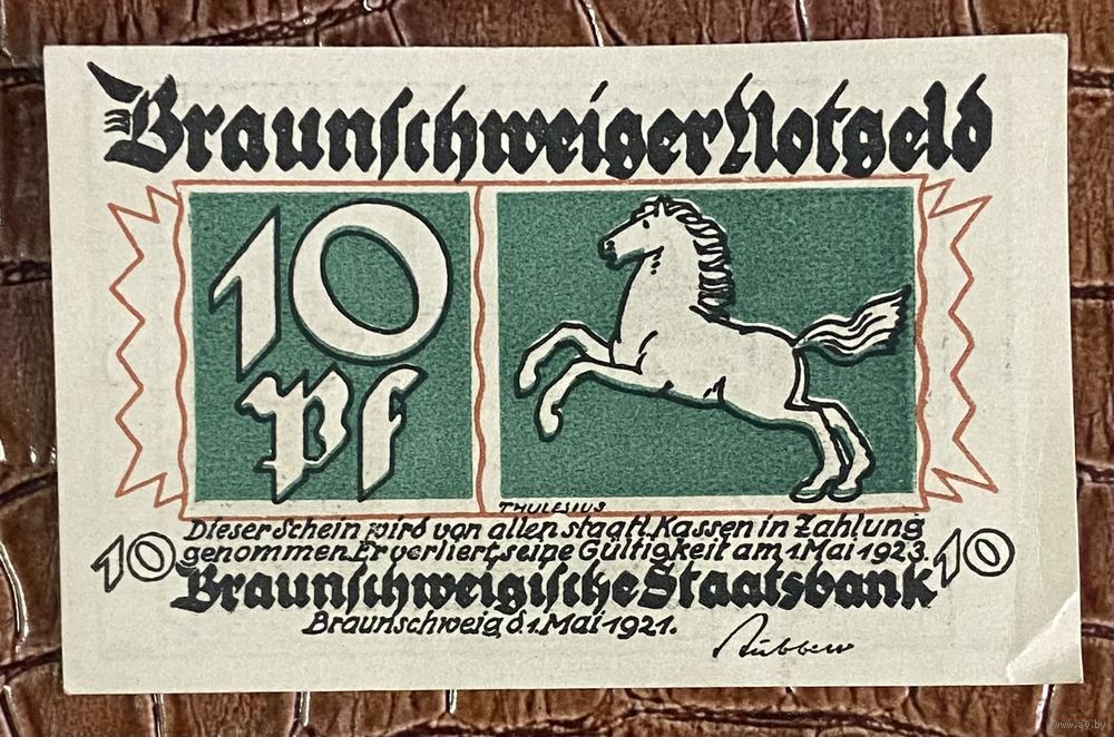 Нотгельд 10 пфеннигов 1921 год. Брауншвейг,. Веймарская республика
