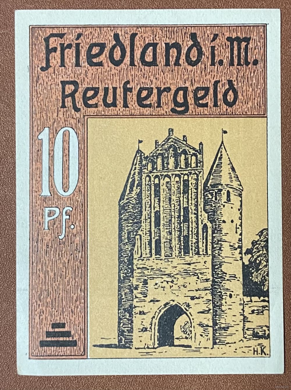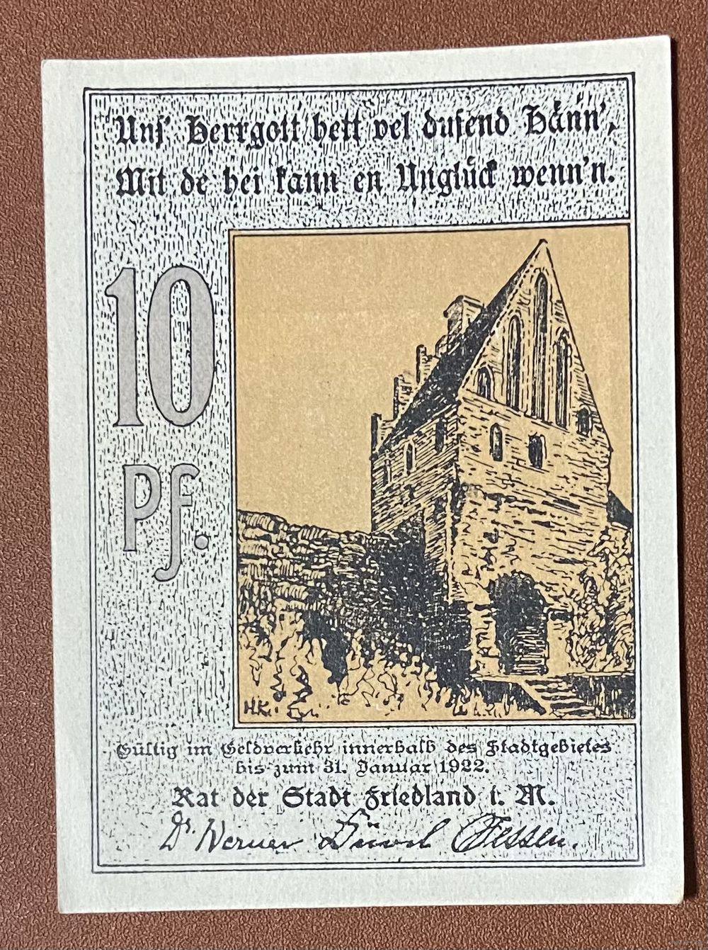 Нотгельд 10 пфеннигов 1922 год. Фридланд-ин-Мекленбург . Веймарская республика