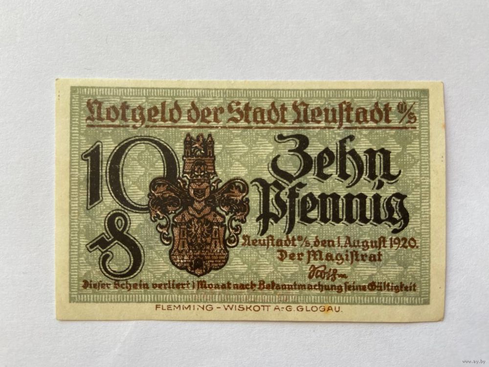 Нотгельд 10 пфеннигов Ньюштадт. Веймарская республика - 1602