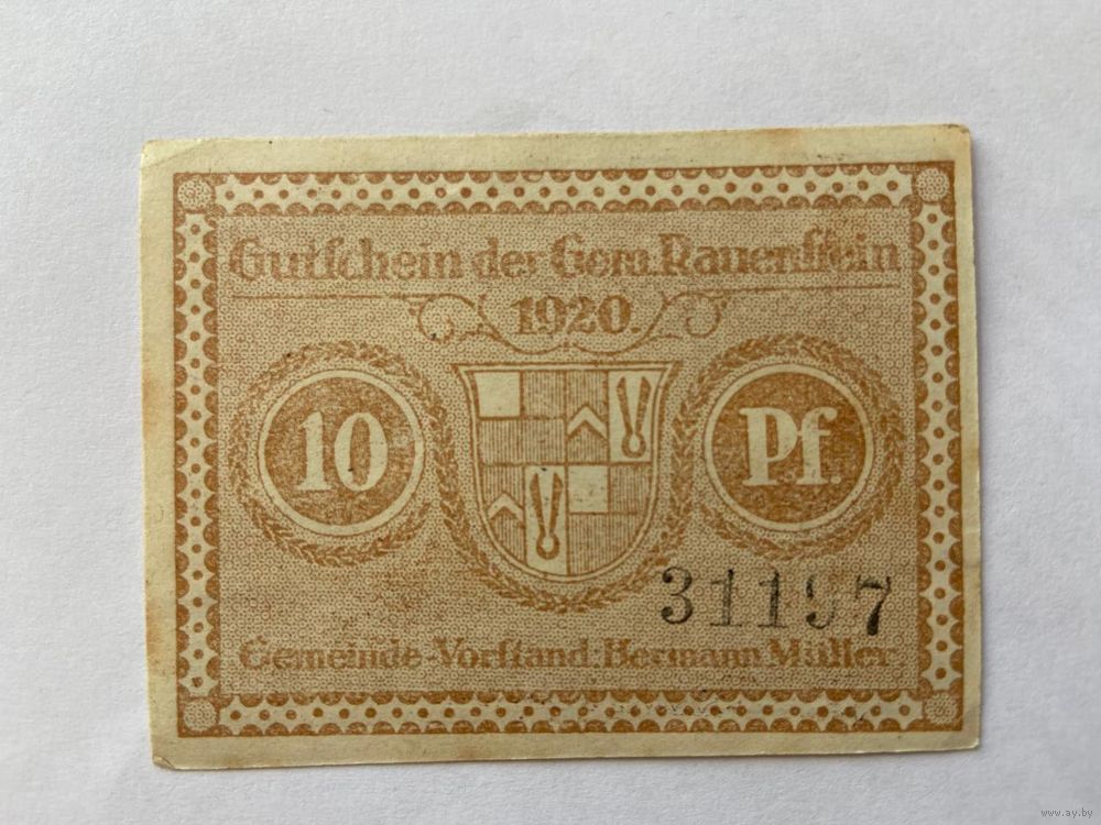 Нотгельд 10 пфеннигов Рауенфрай. Веймарская республика - 1602