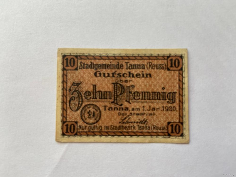 Нотгельд 10 пфеннигов Танна. Веймарская республика - 1602