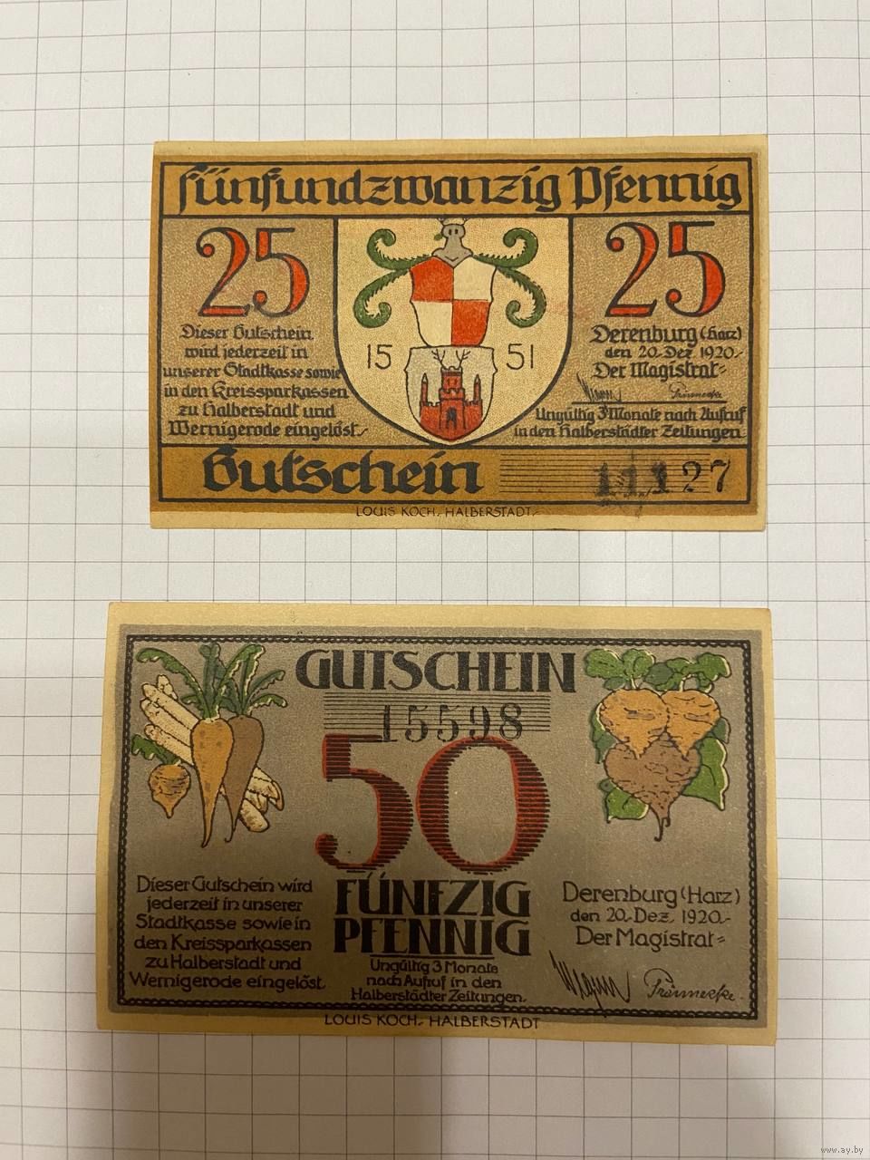 Нотгельд 25-50 пфеннигов. Германия. Веймарская республика Деренбург -0201