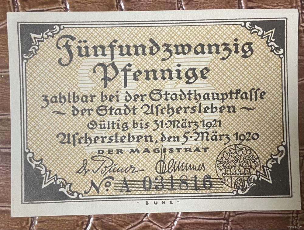 Нотгельд 25 пфеннигов 1920 год. Ашерслебен. Веймарская республика