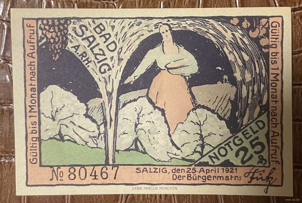 Нотгельд 25 пфеннигов 1921 год. Бад-Зальциг. Веймарская республика