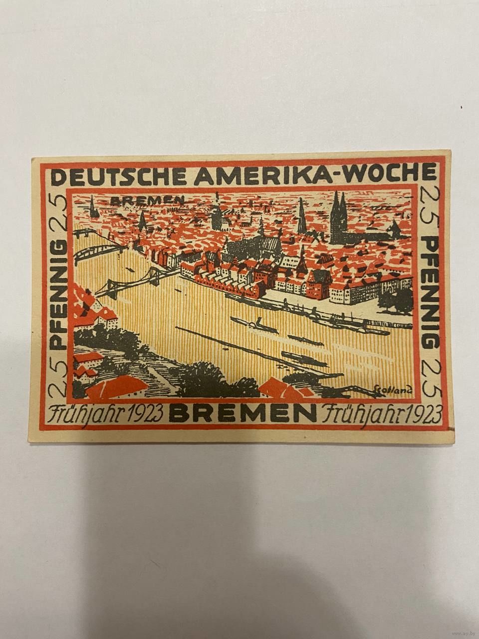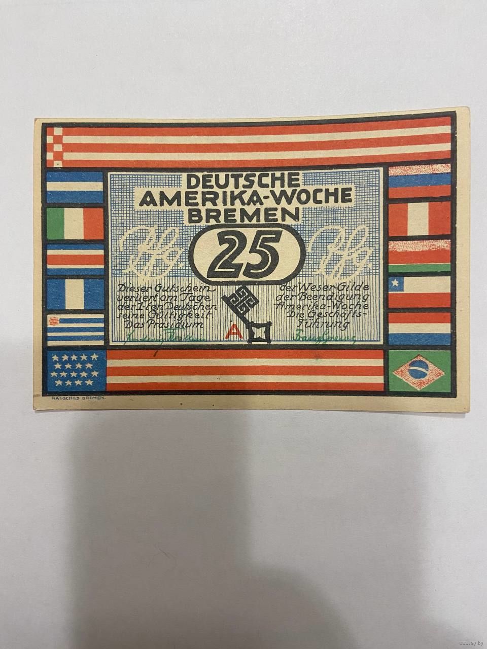 Нотгельд 25 пфеннигов 1921 год. Бремен-Америка. Веймарская республика - 2201
