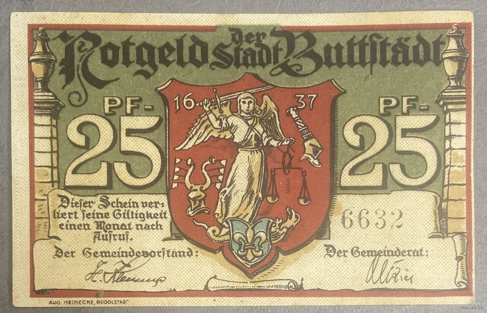 Нотгельд 25 пфеннигов 1921 год. Буттштедт,. Веймарская республика