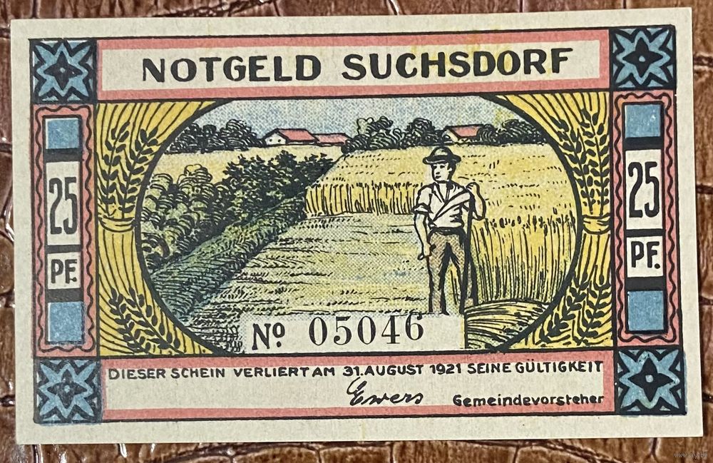 Нотгельд 25 пфеннигов 1921 год. Зуксдорф,. Веймарская республика