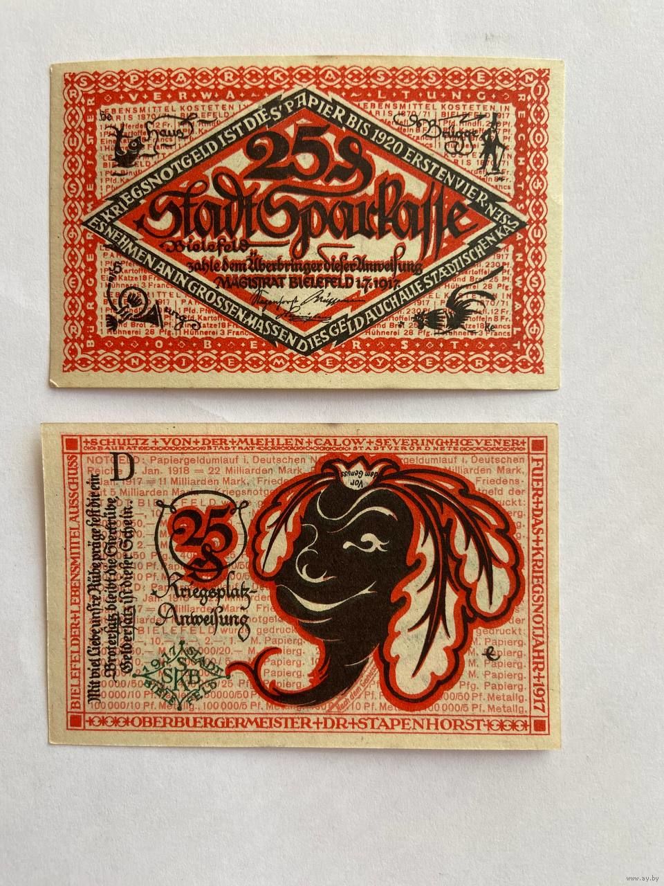 Нотгельд 25 пфеннигов Биллефельд. Веймарская республика - 1602 (3)