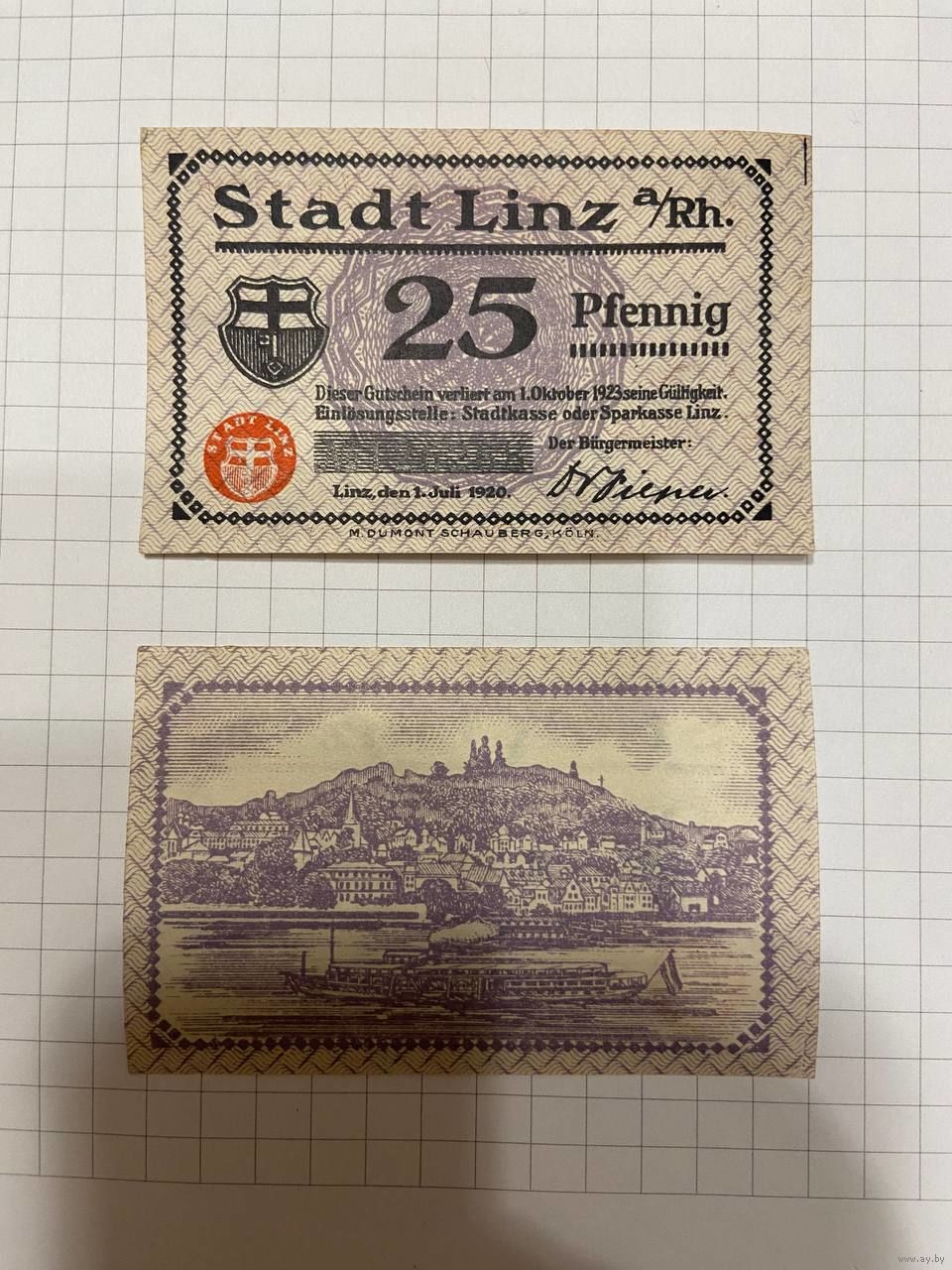 Нотгельд 25 пфеннигов. Германия. Веймарская республика Линц-0201