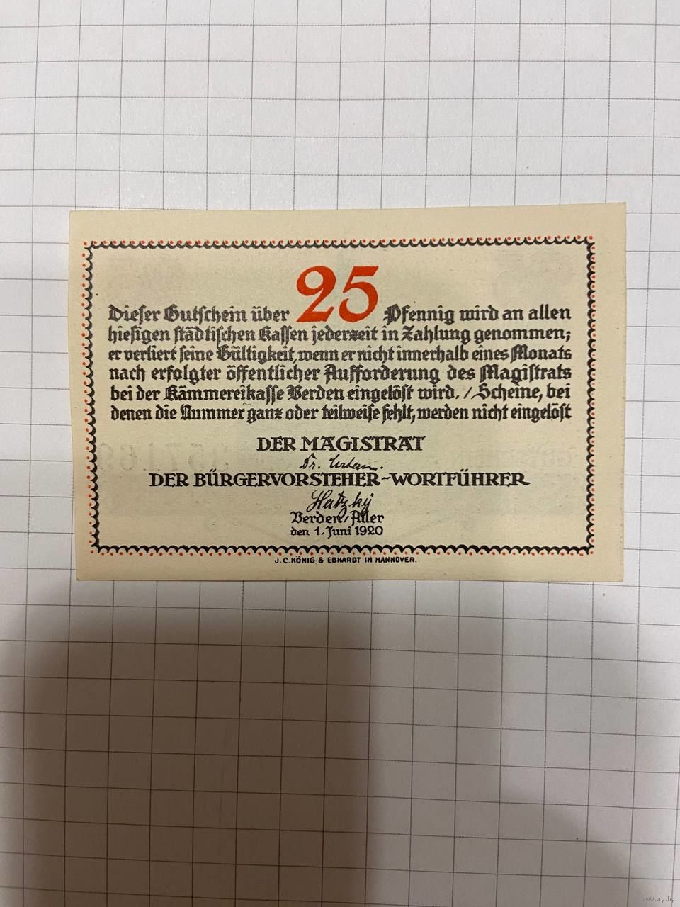 Нотгельд 25 пфеннигов. Германия. Веймарская республика Верден-0201