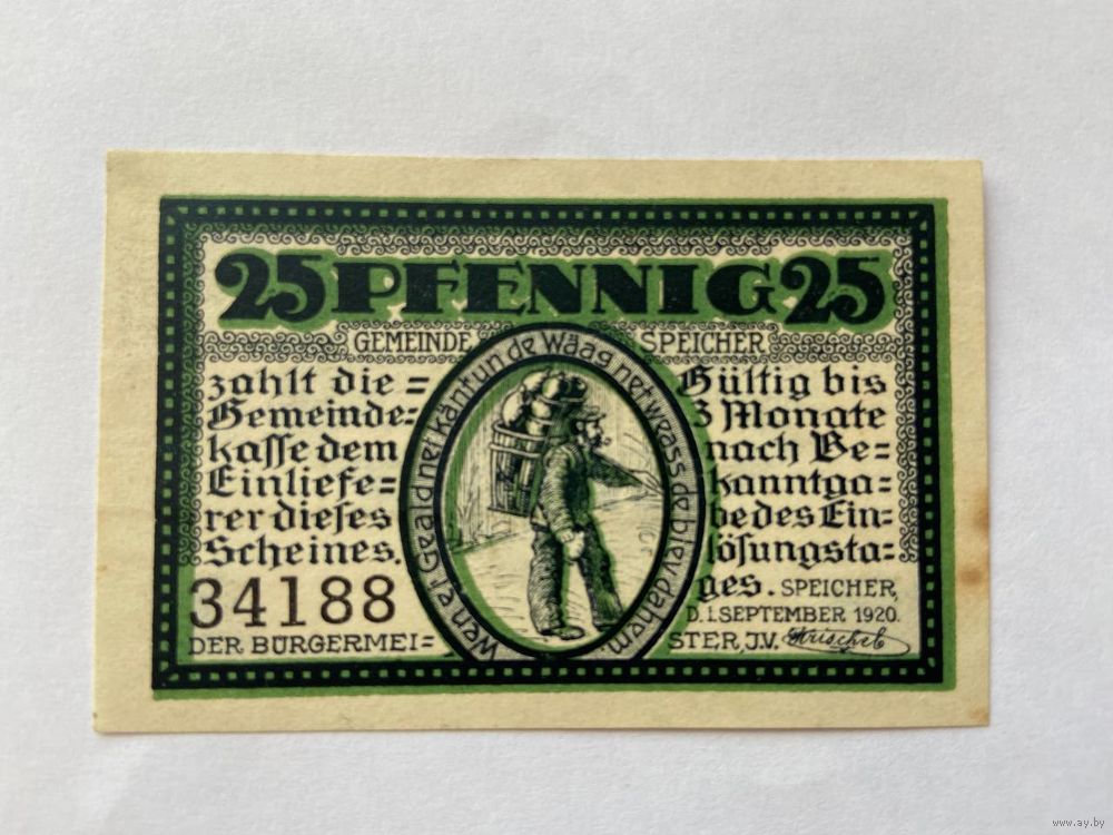 Нотгельд 25 пфеннигов Шпейхер. Веймарская республика - 1602