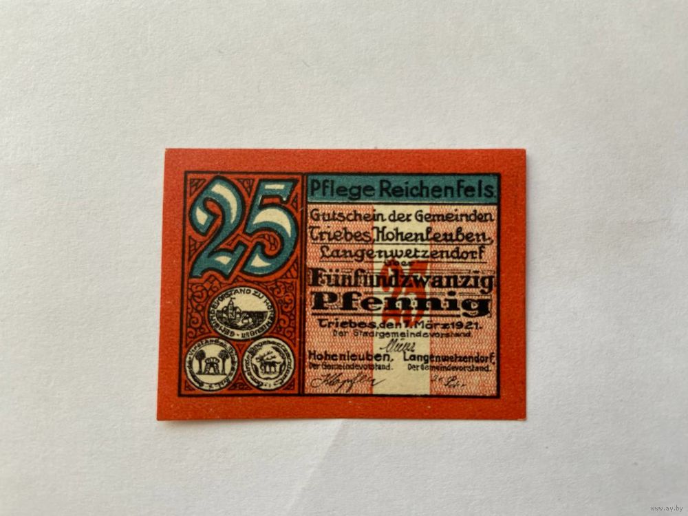 Нотгельд 25 пфеннигов Трайбс. Веймарская республика - 1602