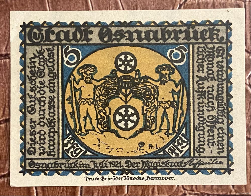 Нотгельд 5 пфеннигов 1921 год. Оснабрюк. Веймарская республика