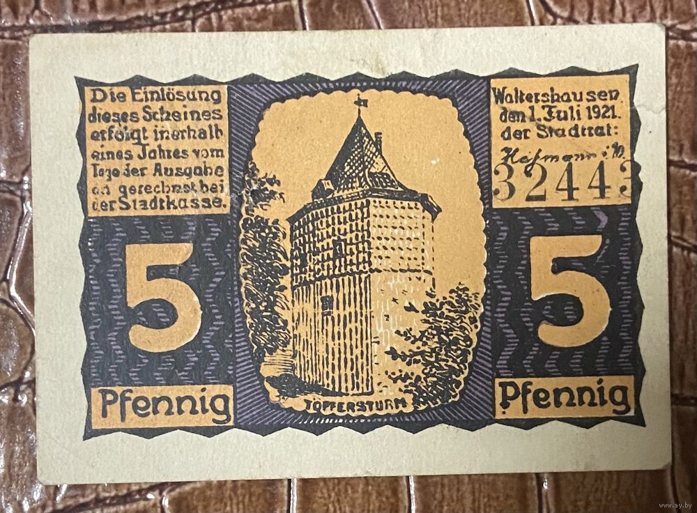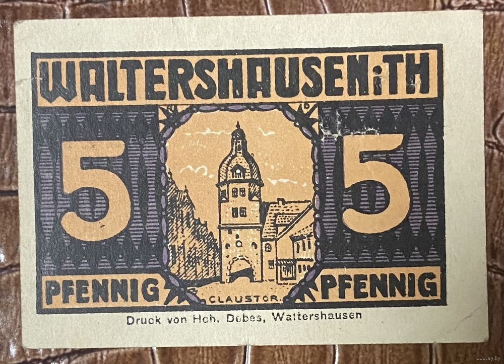 Нотгельд 5 пфеннигов 1921 год. Вальтерсхаузен. Веймарская республика