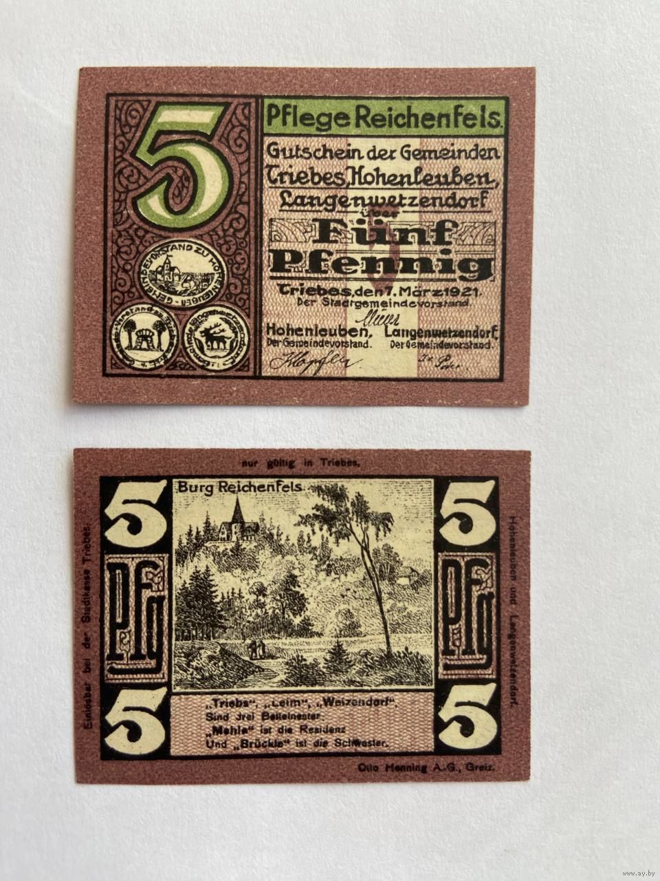 Нотгельд 5 пфеннигов Трайбс. Веймарская республика - 1602 (2)