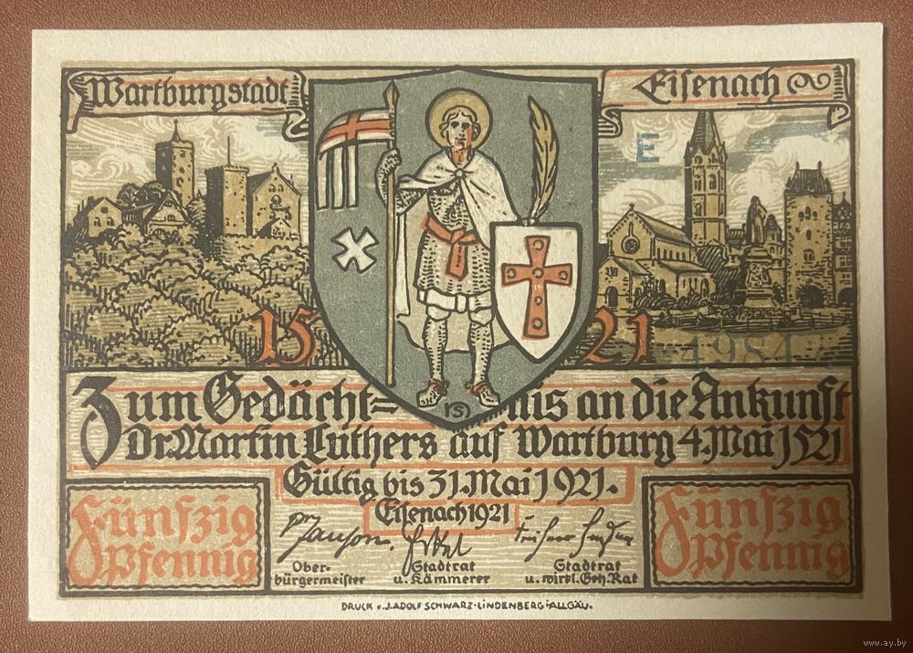 Нотгельд 50 пфеннигов 1921 год. Айзенах. Веймарская республика