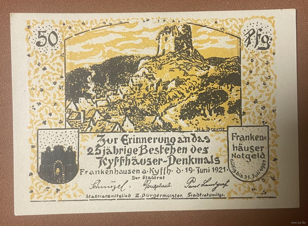 Нотгельд 50 пфеннигов 1921 год. Бад-Франкенхаузен-ам-Киффхойзер. Веймарская республика