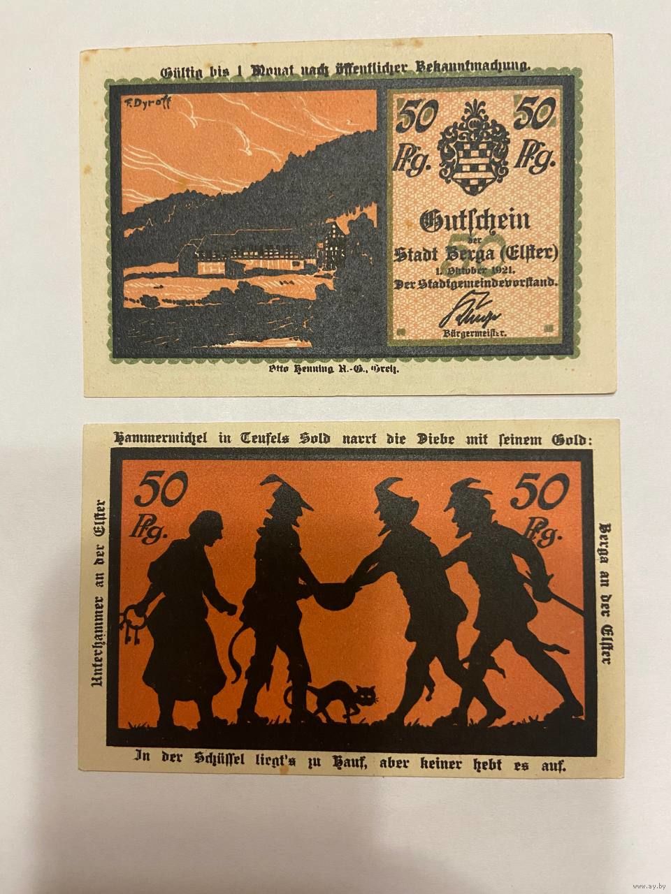 Нотгельд 50 пфеннигов 1921 год. Берга. Веймарская республика - 2201
