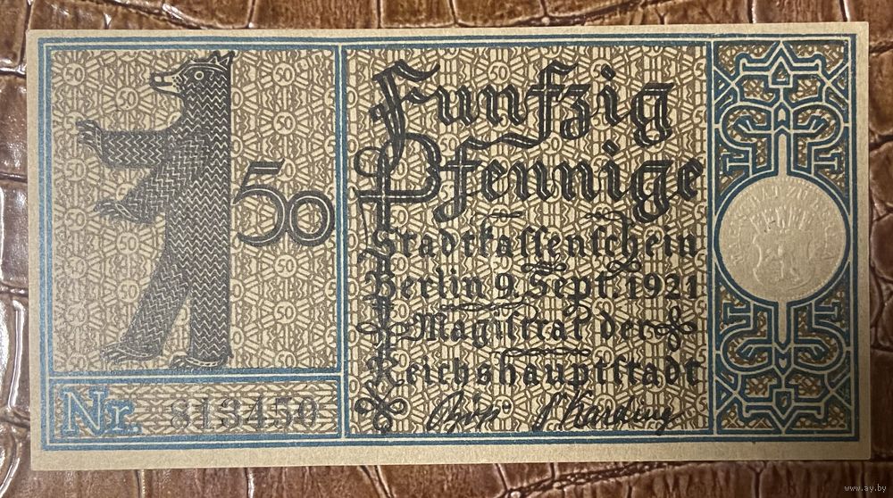 Нотгельд 50 пфеннигов 1921 год. Берлин. Веймарская республика