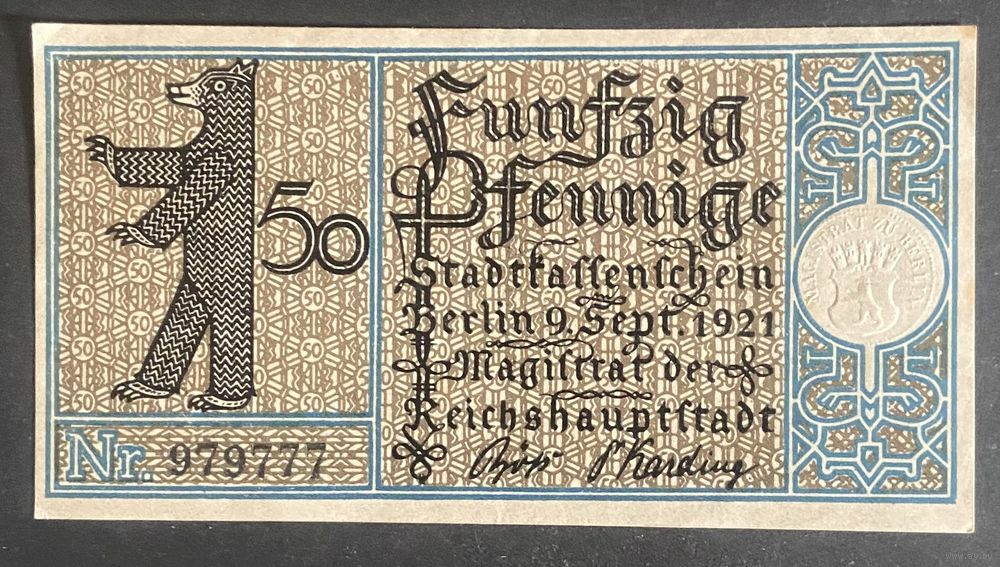 Нотгельд 50 пфеннигов 1921 год. Берлин. Веймарская республика