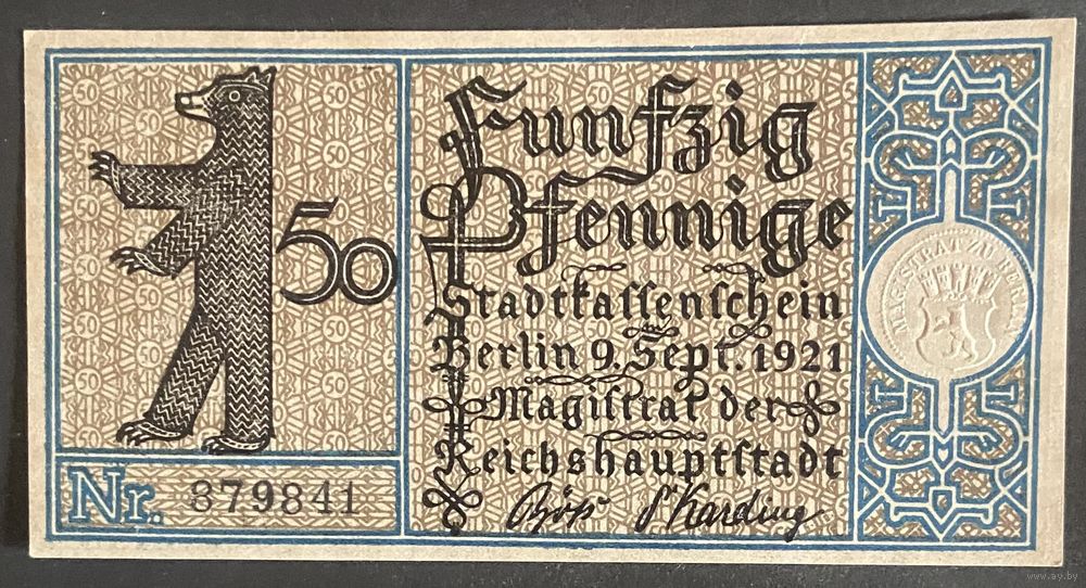 Нотгельд 50 пфеннигов 1921 год. Берлин. Веймарская республика
