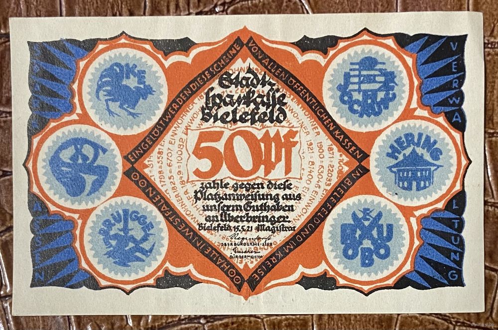 Нотгельд 50 пфеннигов 1921 год. Билефельд,. Веймарская республика