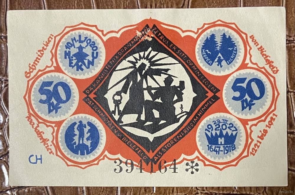 Нотгельд 50 пфеннигов 1921 год. Билефельд,. Веймарская республика