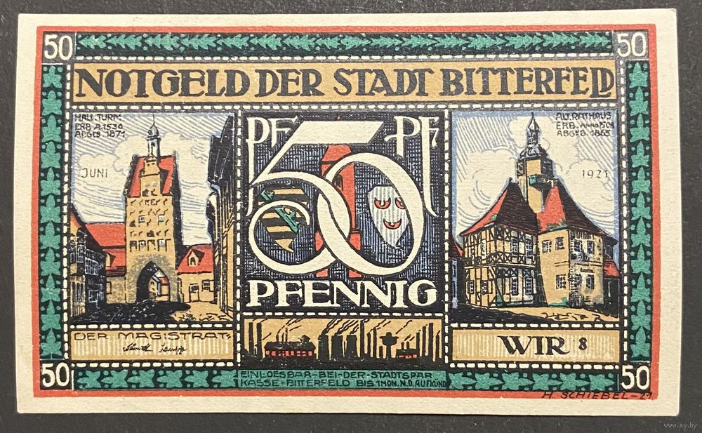 Нотгельд 50 пфеннигов 1921 год. Биттерфельд,. Веймарская республика
