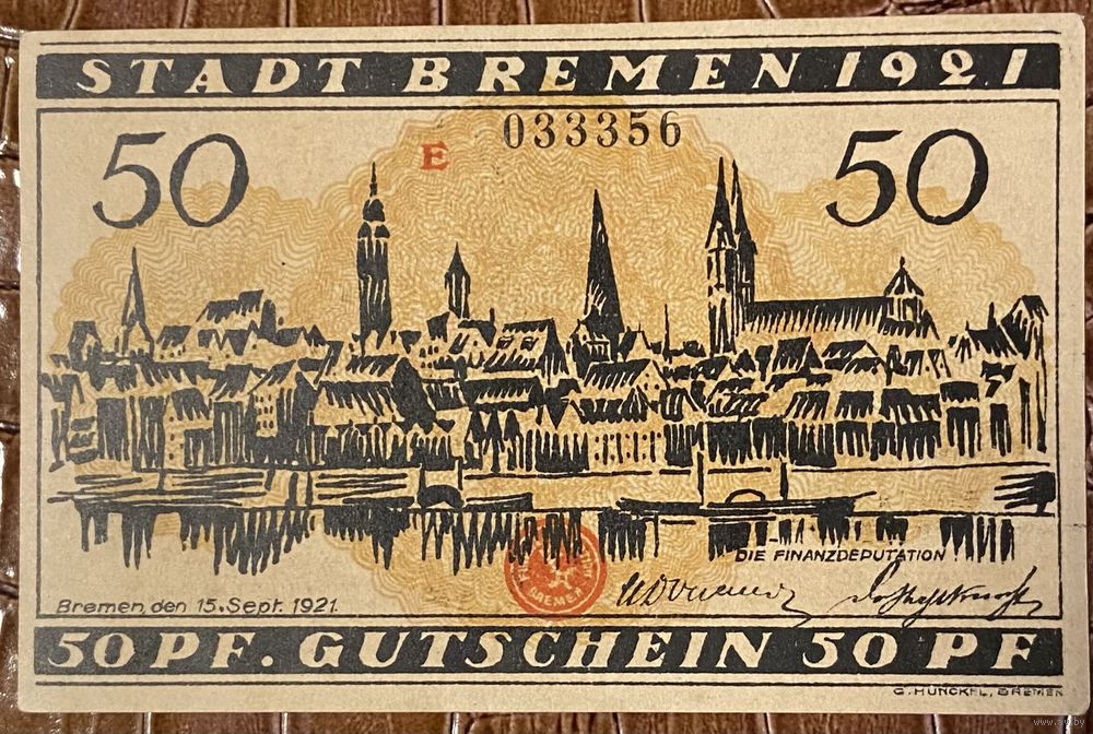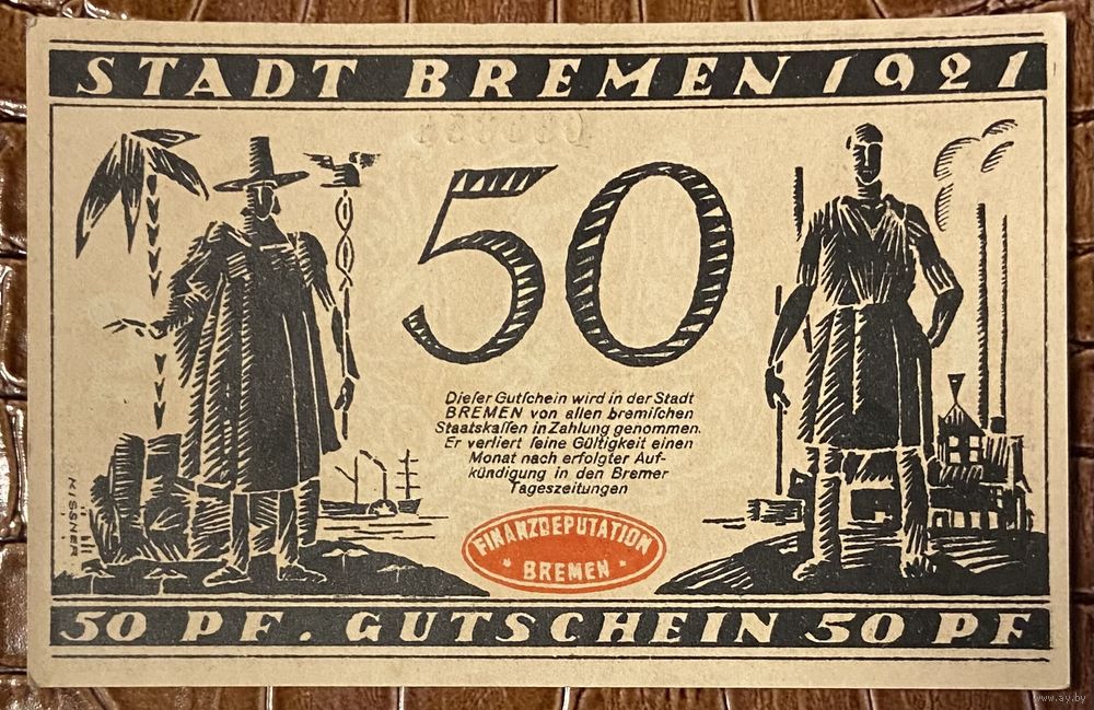 Нотгельд 50 пфеннигов 1921 год. Бремен,. Веймарская республика