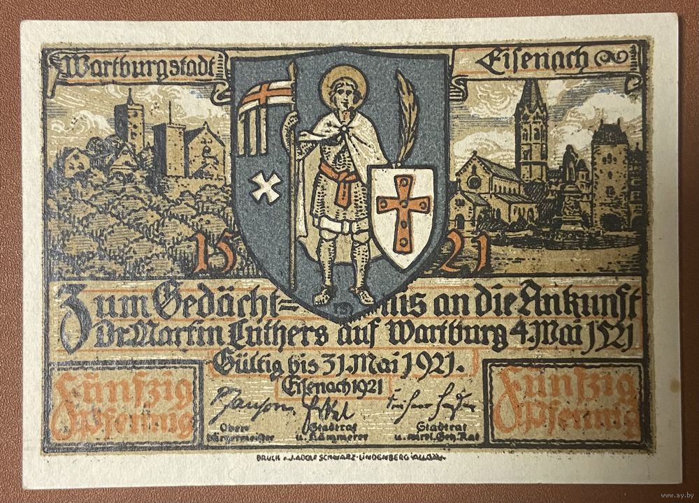 Нотгельд 50 пфеннигов 1921 год. Эйзенах. Веймарская республика
